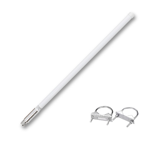 Technical specification: Frequency: 868 MHz.Gain: 10 dBi.Connection: N-male.Antenna length: about 130 cm.Mounting: U-shaped brackets x2 (included).Holder diameter: up to 51 mm.Material: Fiberglass.Vertical polarization.Color: white.